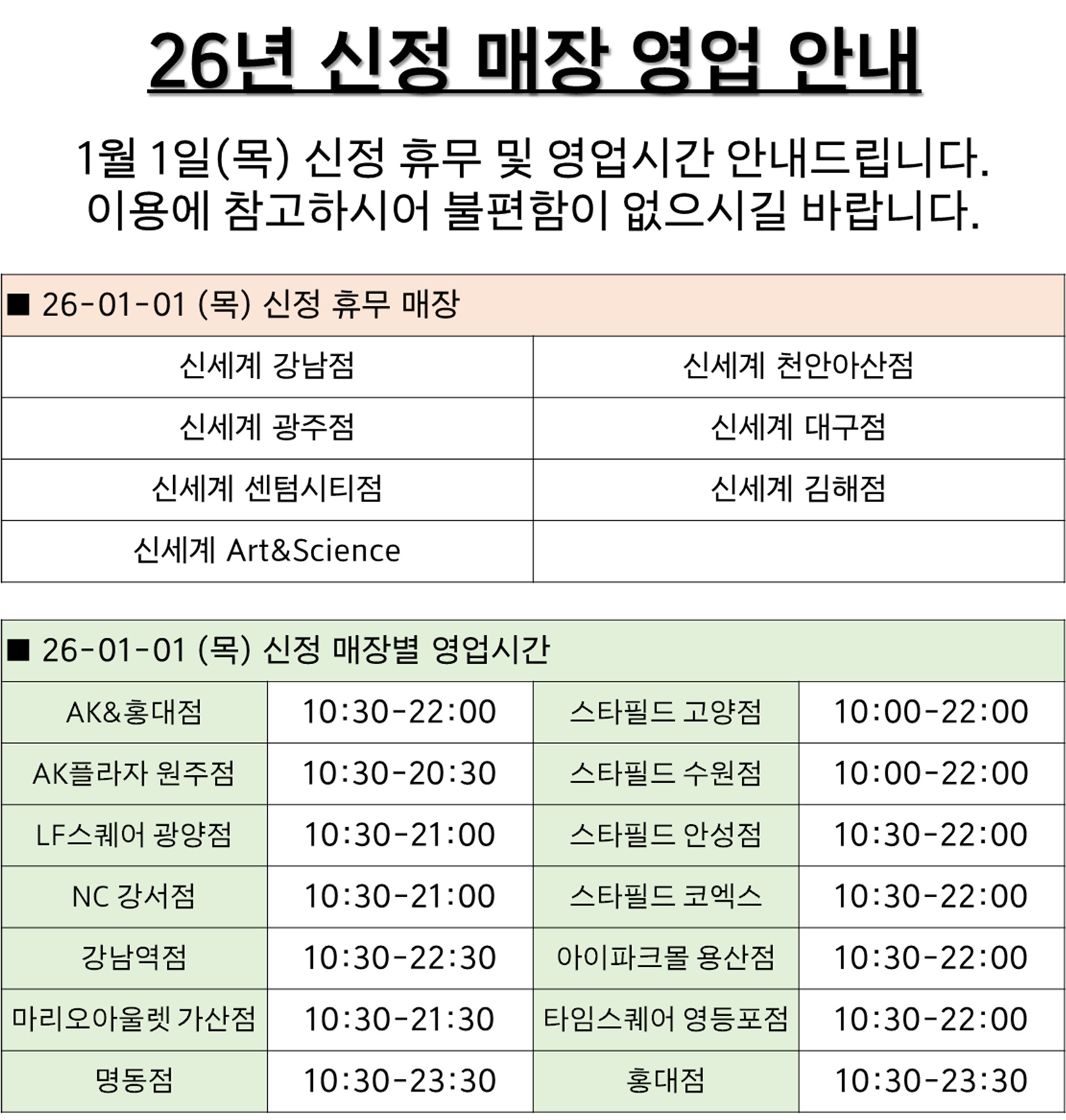 | 95 | [공지]1/1(목) 신정 매장 영업 안내 | 2025.12.29 |