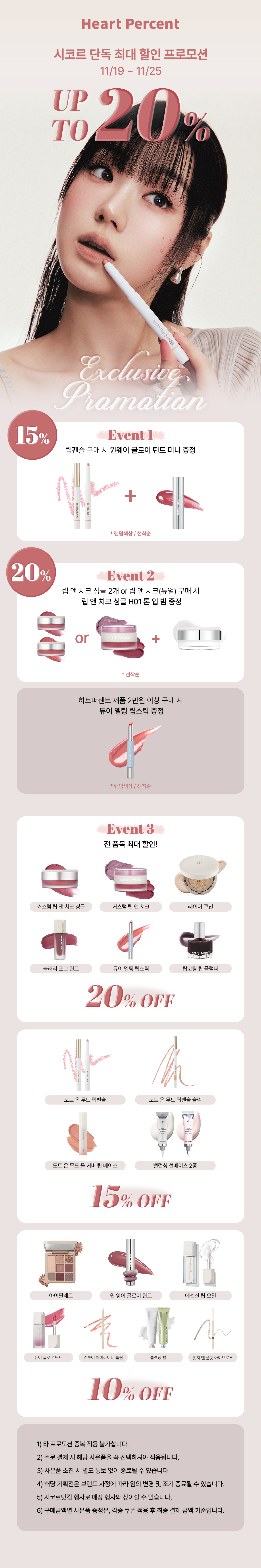하트퍼센트 립펜슬/틴트 외 전품목 ~20% 할인