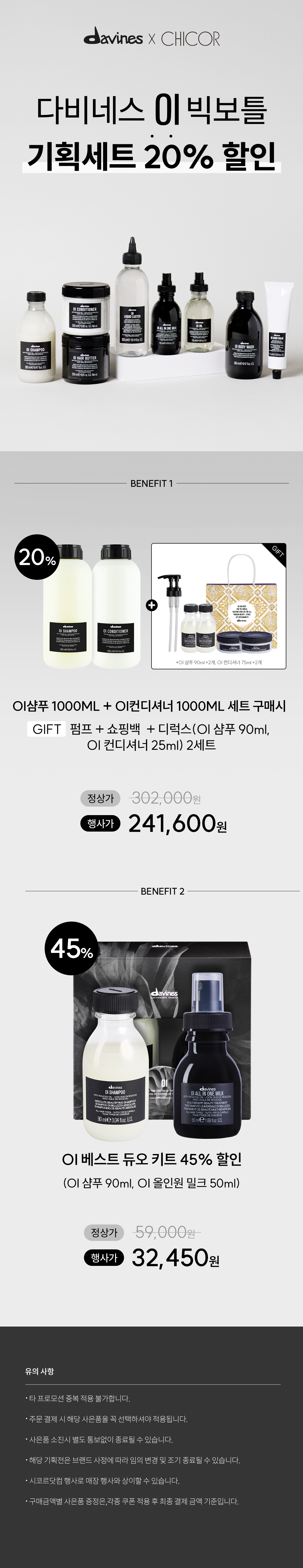 다비네스 오아이 샴푸 세트 외 최대 20% 할인
