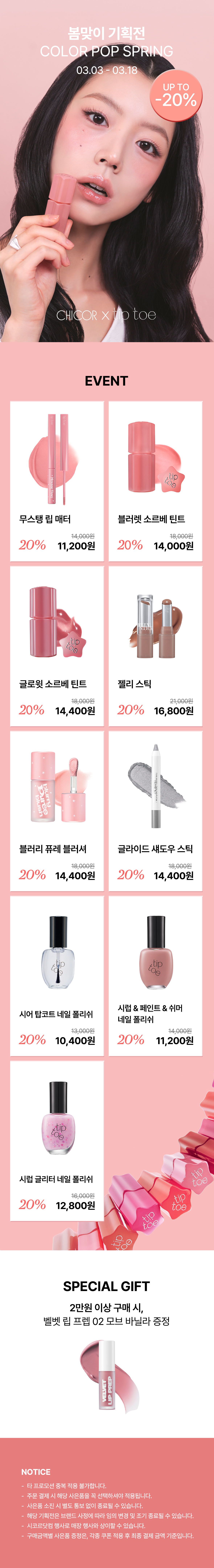 팁토우 전상품 20% 할인