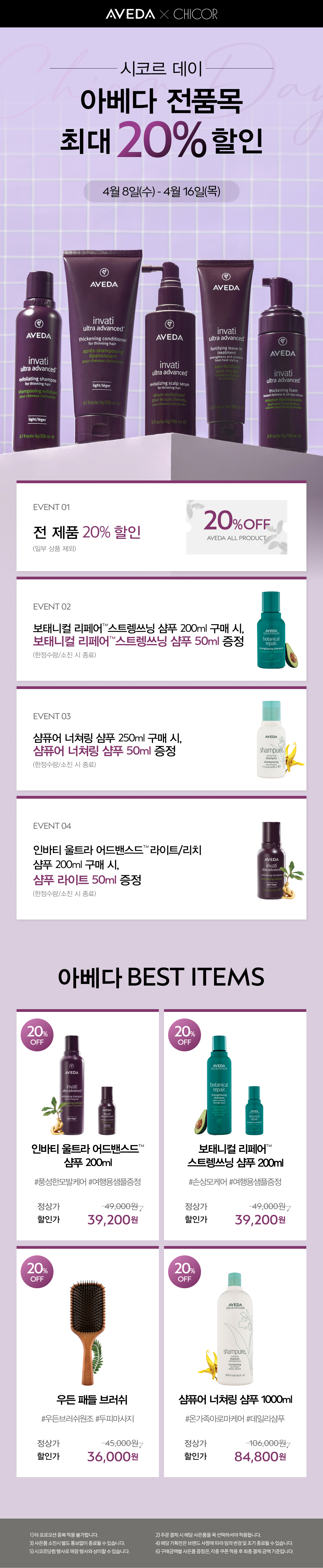 아베다 전품목 ~20% 할인 & 기프트