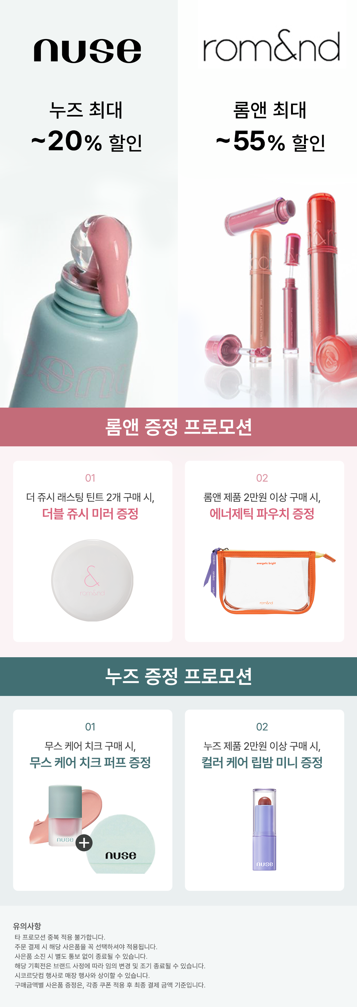 롬앤/누즈 전품목 최대 55% 할인 & 기프트