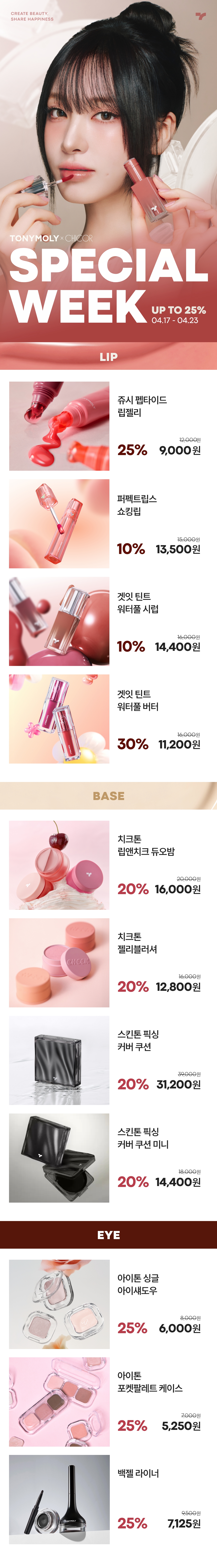 라카 립 전품목 최대 25% 할인