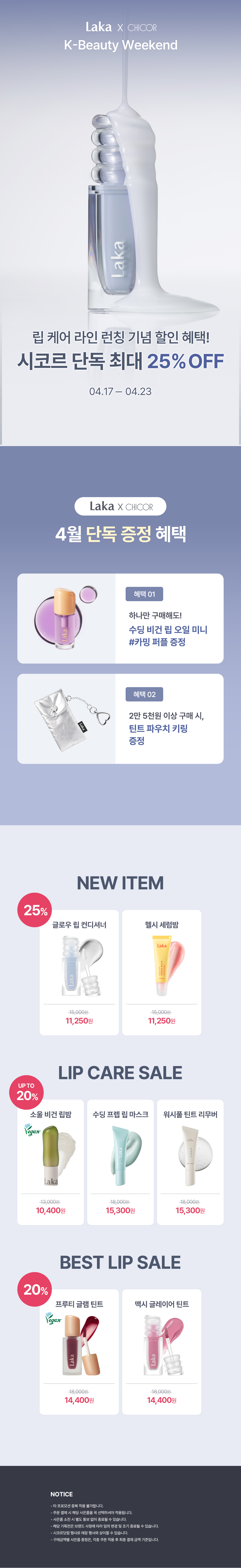 라카 립 전품목 최대 25% 할인