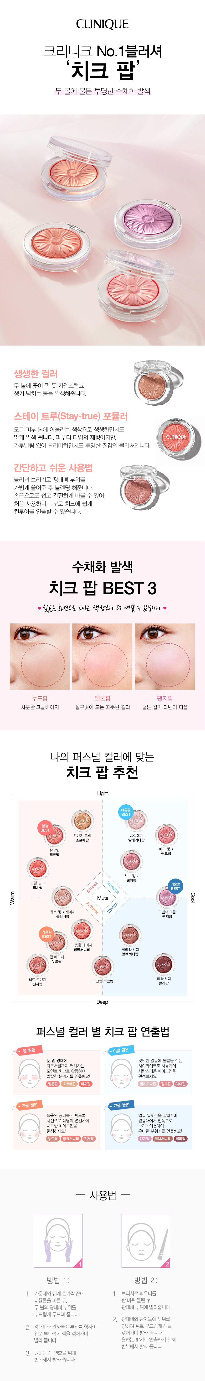 맑은 수채화 발색으로 유명해진 크리니크 No.1 블러셔 '치크팝'
