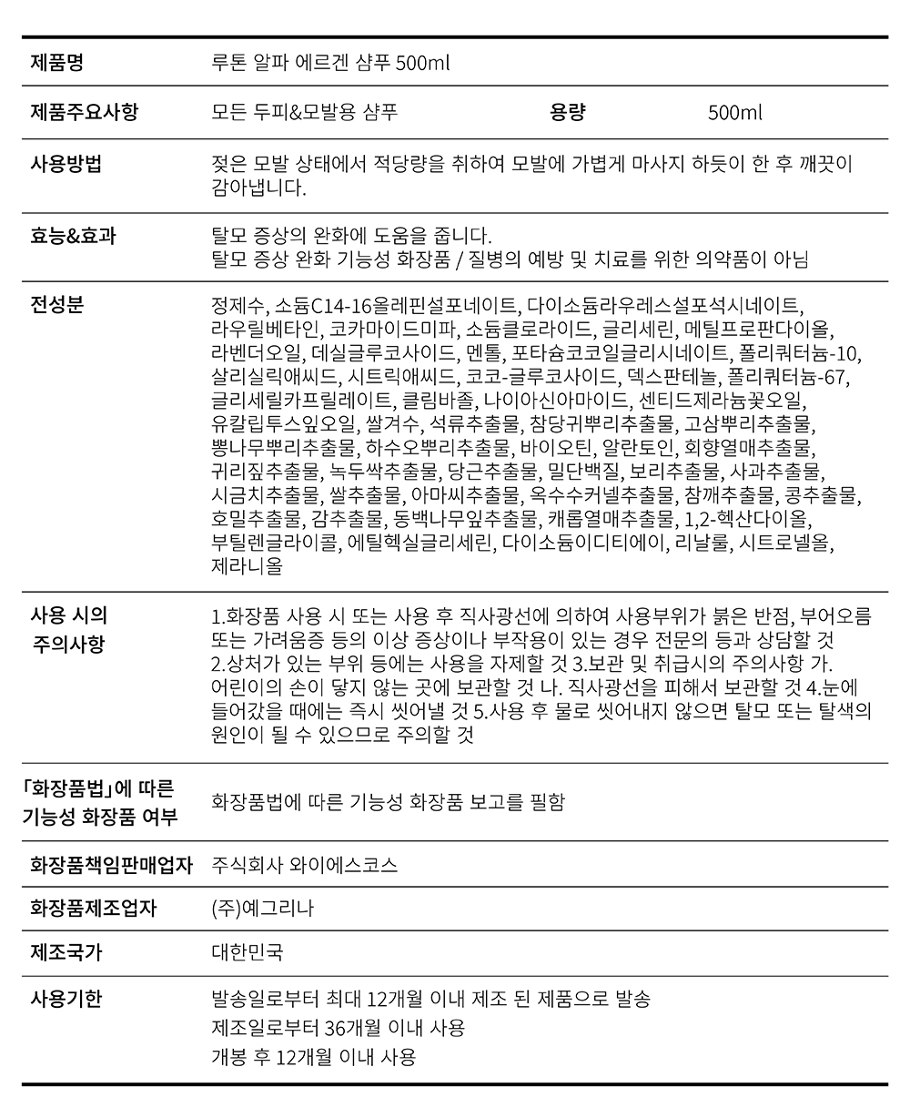 여성 두피용 알파에르겐 탈모샴푸 500ml (탈모증상완화)