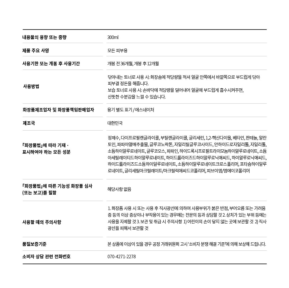 [에스네이처] 아쿠아 오아시스 토너 300ml