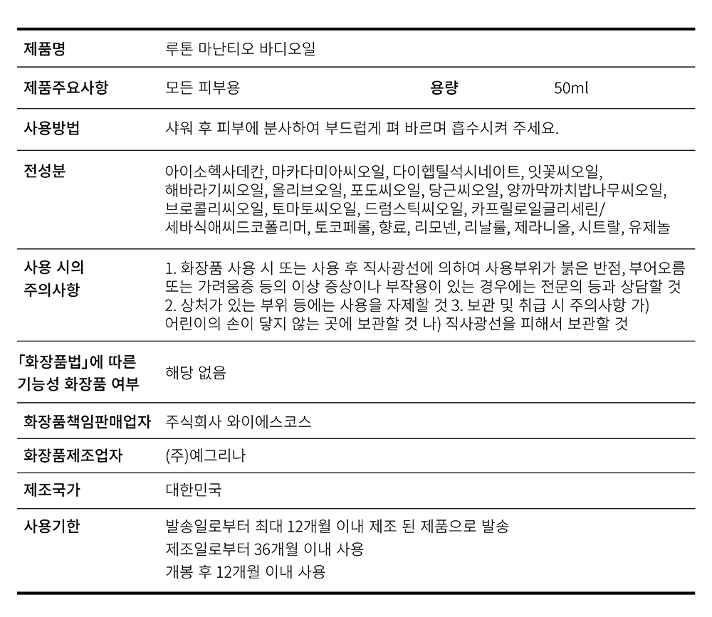 루톤 마난티오™ 바디오일 50ml
