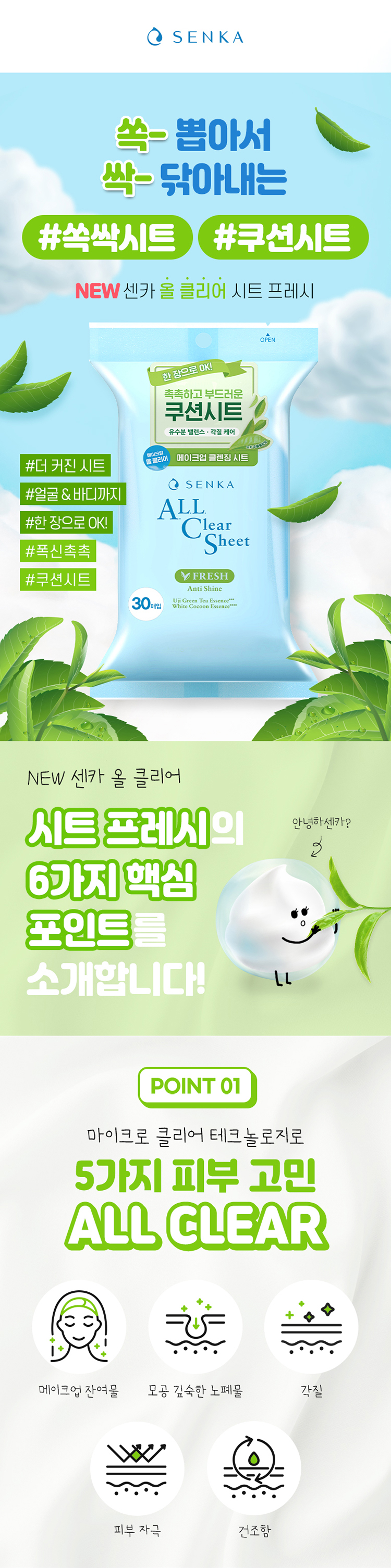 [클렌징 시트]센카 올 클리어 시트 프레시 30매입
