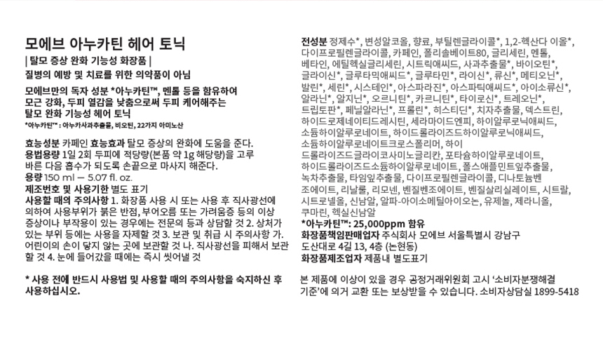 [누난내게여자야 구본희 PICK] 모에브 아누카틴 두피쿨링 헤어 토닉 150ml