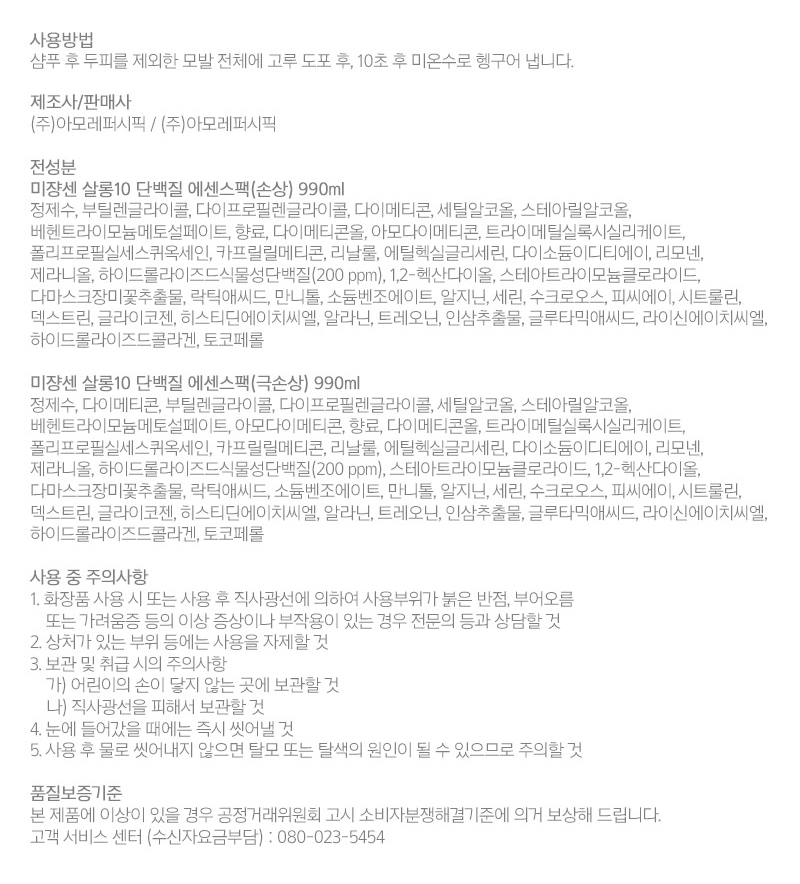 [대용량] 미쟝센 살롱10 단백질 에센스팩(극손상) 990ml