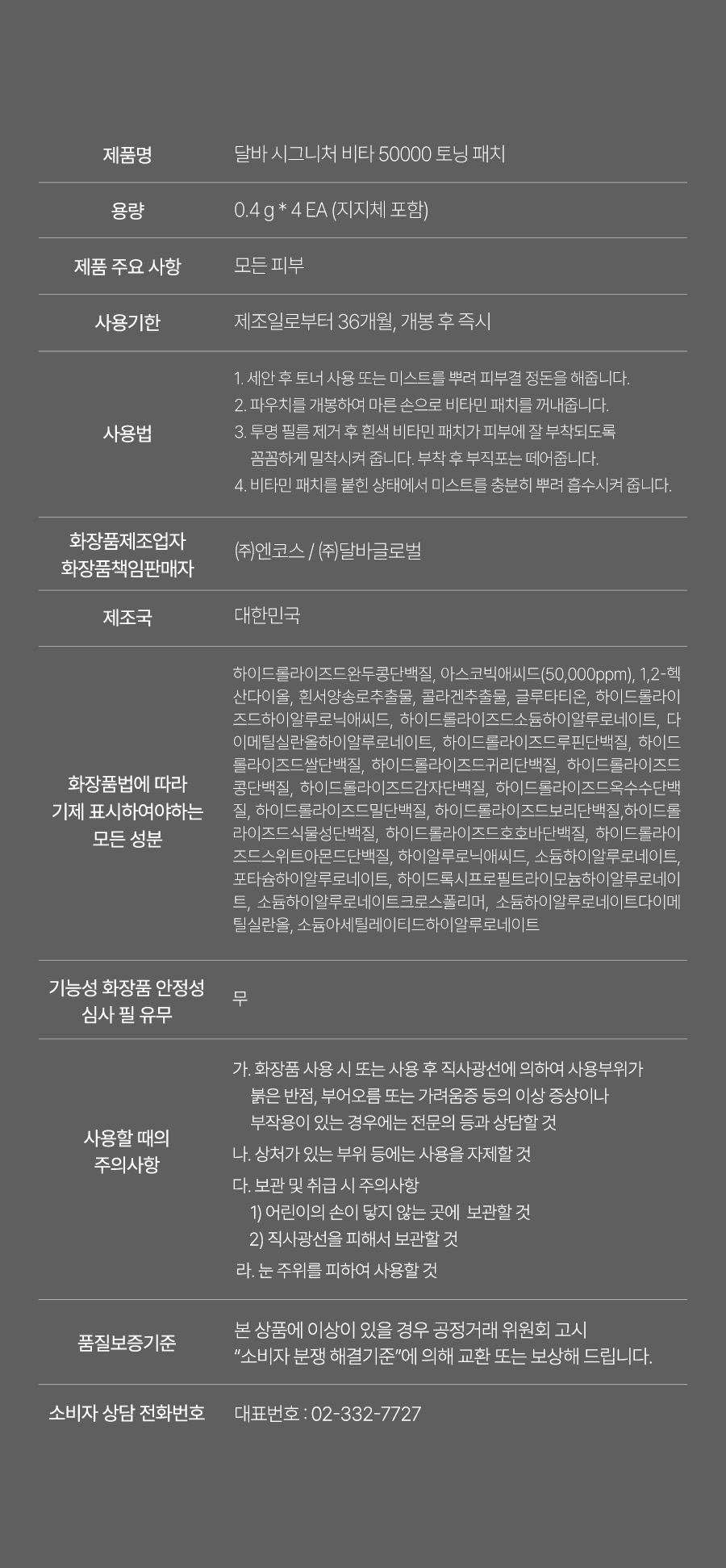 ※ 해당 상품 정보(상품 상세 설명)는 브랜드 본사 정책에 따라 협력사가 직접 등록한 것입니다.