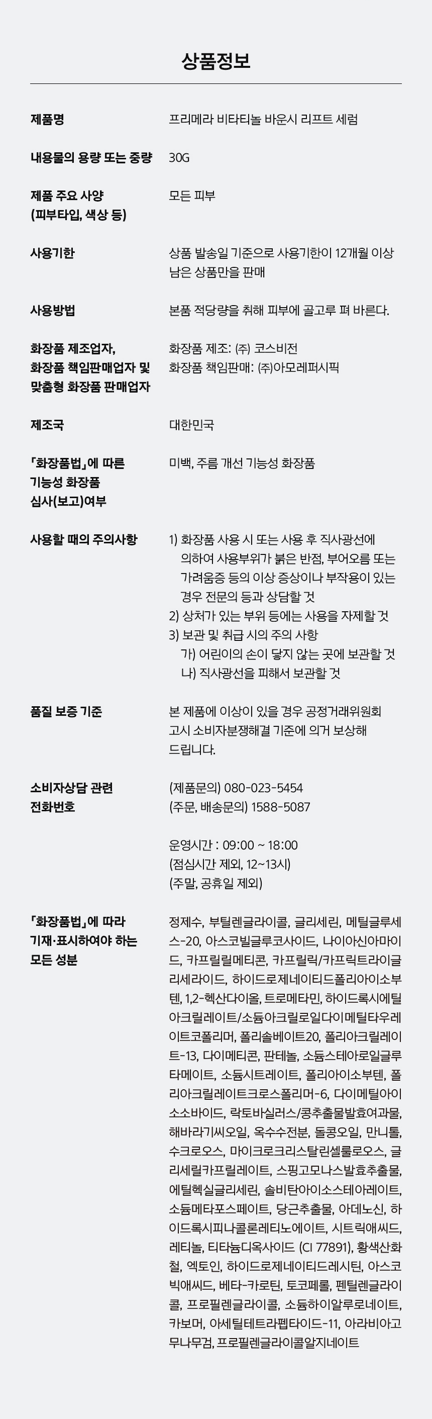 [초강력 탄력 리프팅] 프리메라 비타티놀 바운시 리프트 세럼 30g