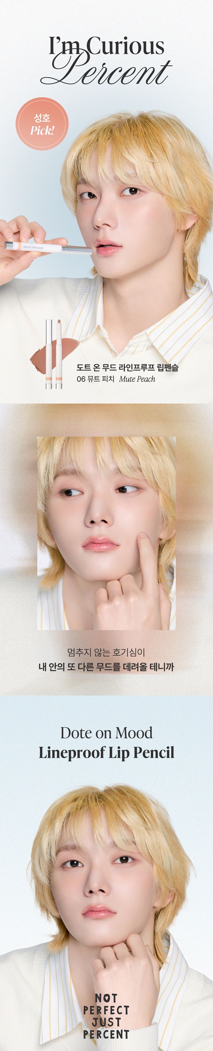 [지속력 최강 오버립펜슬] 하트퍼센트 도트 온 무드 라인프루프 립펜슬